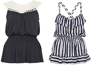 I LOVE both of these tops. They are so summery and nautical. I love the colourful buttons on the right one, and the crochet detail on the left one. They both have shirred waists as well, so would be very flattering! I might have to go back and get of them! The left one is £21.99, and the right £26.99. Not too bad.